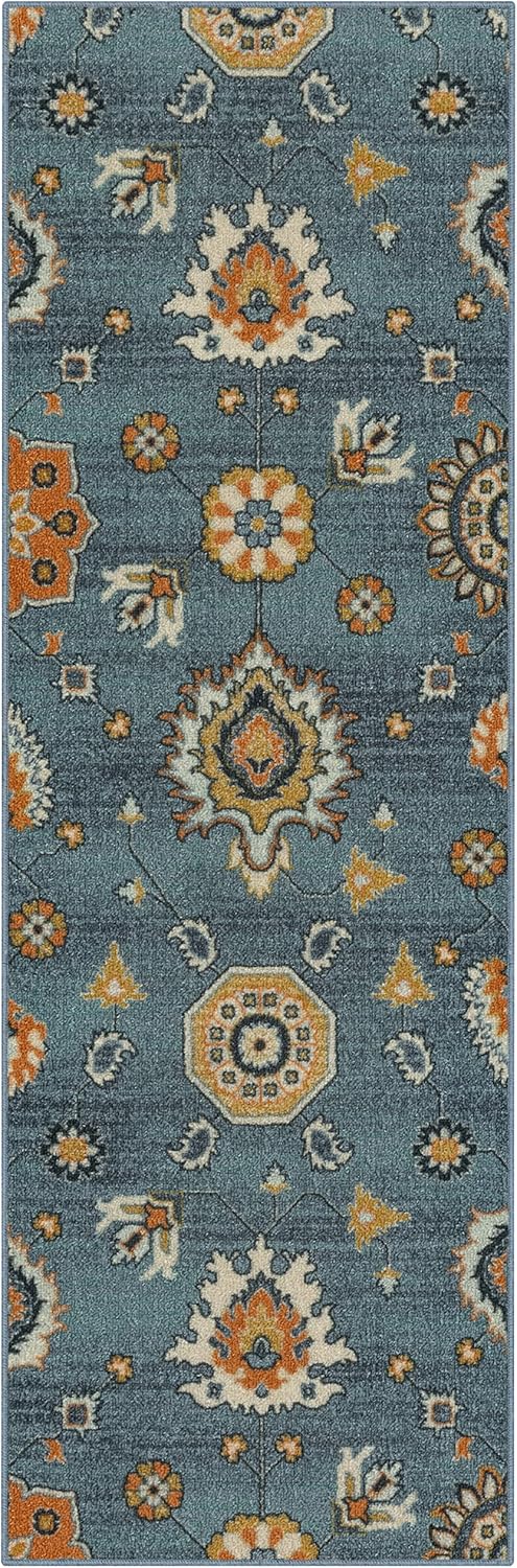 Warm hues of terracotta, gold, green, and blue against a distressed grey background will instantly add eye-catching appeal to any space. The Maples Rugs Fleur Contemporary Motif area rug or runner will be a beautiful addition to any room of your home. This polyester pile features stain resistance and durability for peace of mind in any traffic area.
