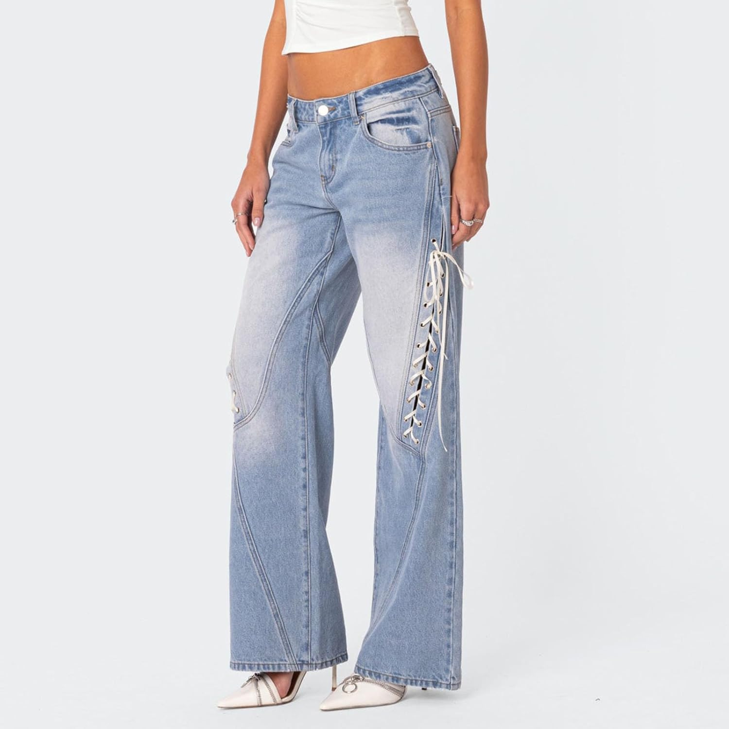 Women's Spring Summer Baggy Pants Mid Waist Loose Side Bandage Wide Leg Denim PantsJeans for women trendy are made of 80%cotton 20%polyester, soft, lightweight, skin-friendly, cozy, comfortable to wear.Straight leg jeans for women, womens wide leg jeans, womens jeans mid waisted, thigh lace up design, slim fit, zipper button closure, y2k jeans, sexy streetwear for women。The womens lace up baggy jeans are an essential fashion item in every woman's closet, suitable for casual daily, going out, street, cocktail, date night, party, club, bar, music festival, birthday, dinner, holiday, travel and other activities.Size (cm)S Length: 108 Hip: 100 Waist: 74M Length: 109 Hip: 104 Waist: 78L Length: 110 Hip: 110 Waist: 84XL Length: 111 Hip: 116 Waist: 90Size (inch)S Length: 42.52 Hip: 39.37 Waist: 29.13M Length: 42.91 Hip: 40.94 Waist: 30.71L Length: 43.31 Hip: 43.31 Waist: 33.07XL Length: 43.7 Hip: 45.67 Waist: 35.43Friendly Tips:1. Please kindly allow a 2-3% difference according to manual measurement.2. Please check the measurement chart carefully before you buy the item.(1 inch=2.54cm)3. Please note that a slight color difference should be acceptable due to the light and screen. Thanks.