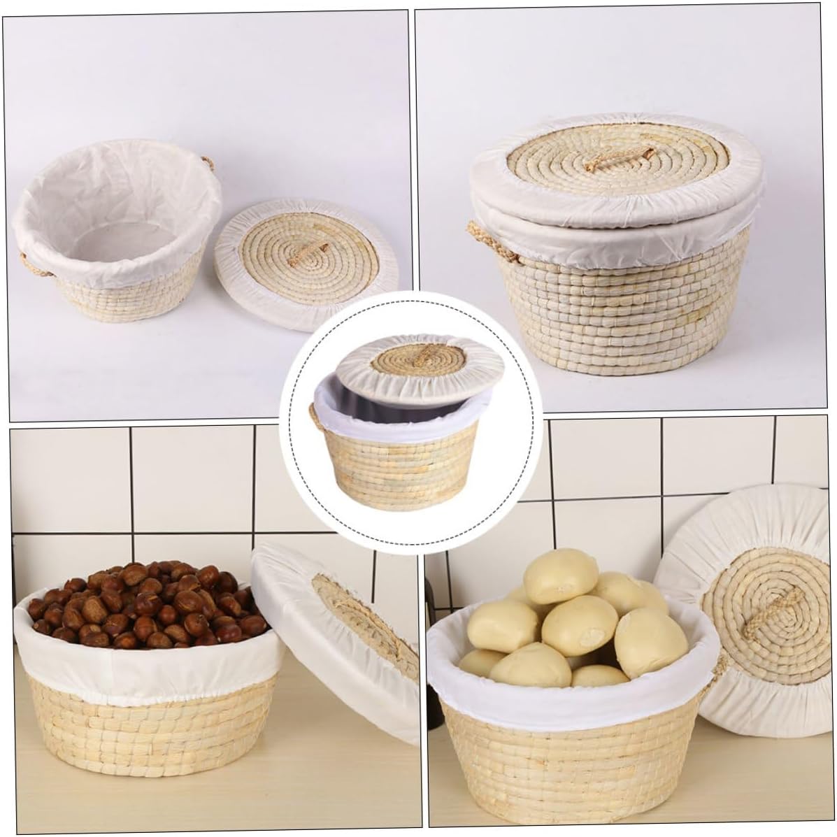 Package Include 1 x knit storage basket Features -Product Info:Baking bread basket -Material: Straw corn husk -Size: About 30.00X30.00X16.00cm/11.79X11.79X6.29inch -Color: Beige -Can be used to hold potatoes, nuts, eggs, and a variety of vegetables domestic woven basket. -Made of corn husk, natural, no odor, no irritation large storage basket. -At the same time, it is also a good decoration for the kitchen knit storage basket. -With large capacity and large opening design, you can store more food and take it easily kitchen woven basket. -It's suitable for the kitchen at home, as well as the bakery and breakfast shop woven basket.Goods Descriptionkitchen eggs storage basket At the same time, it's also suitable for bakeries to hold bread, steamed bread and other delicious food.woven basket It's and practical, so that your kitchen is no longer messy.domestic woven basket This is a woven basket made of corn husk, which is natural and healthy.large storage basket It won't hurt your body